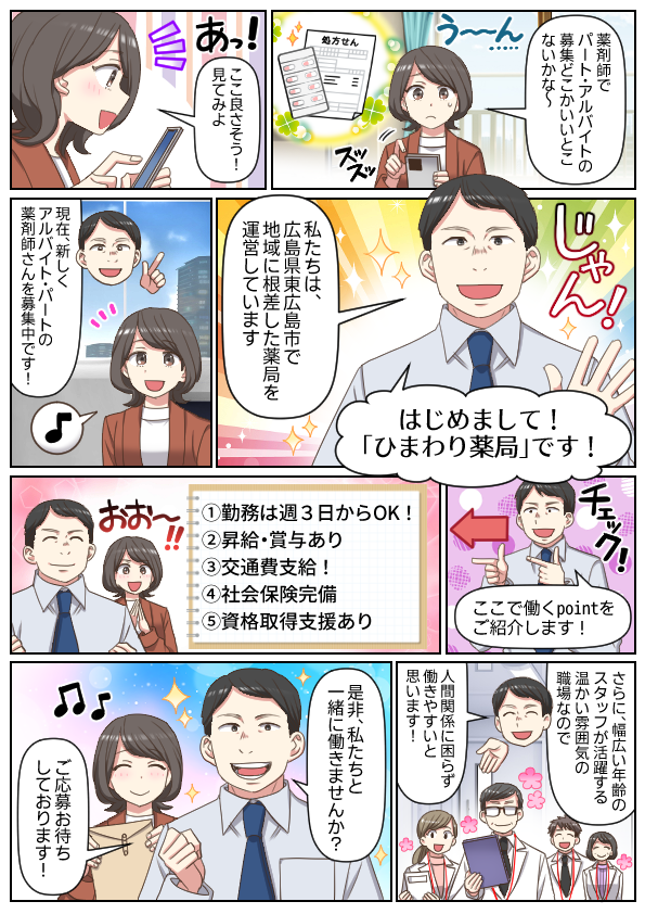 | 勤務先 | ひまわり薬局 広島県 東広島市 西条町寺家7430-1 JR山陽本線「西条駅」より車で9分 |